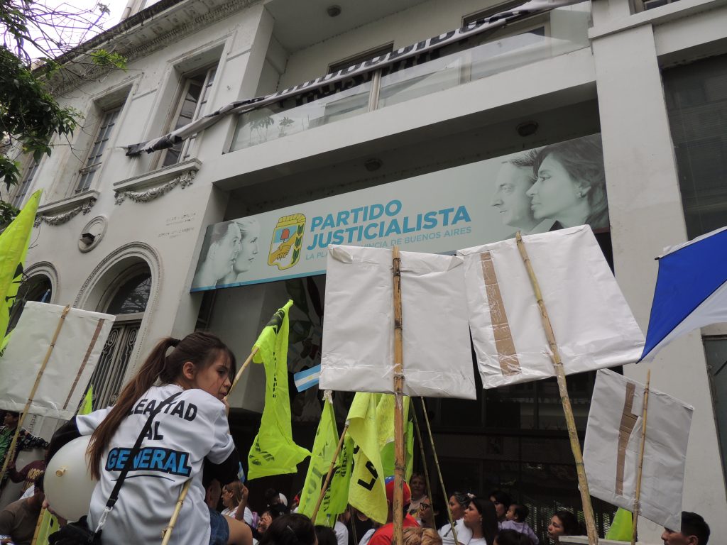 La marcha, que conmemoró el 80° aniversario del Día de la Lealtad, partió desde Plaza San Martín y avanzó hasta Plaza Moreno, con una parada simbólica frente a la sede del Partido Justicialista de La Plata, en 54 entre 7 y 8.