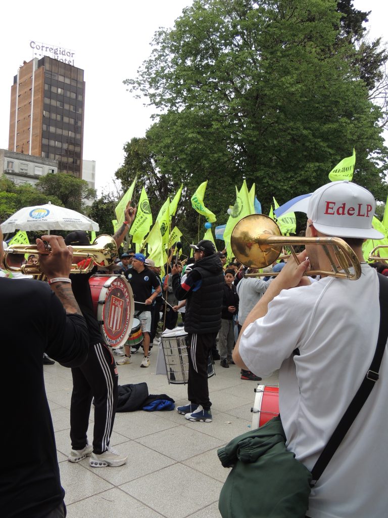Las cámaras de Vive La Plata registraron la marcha desde su concentración hasta la llegada a Plaza Moreno, con banderas, bombos y consignas que mezclaron la mística sindical con la presencia estudiantil.