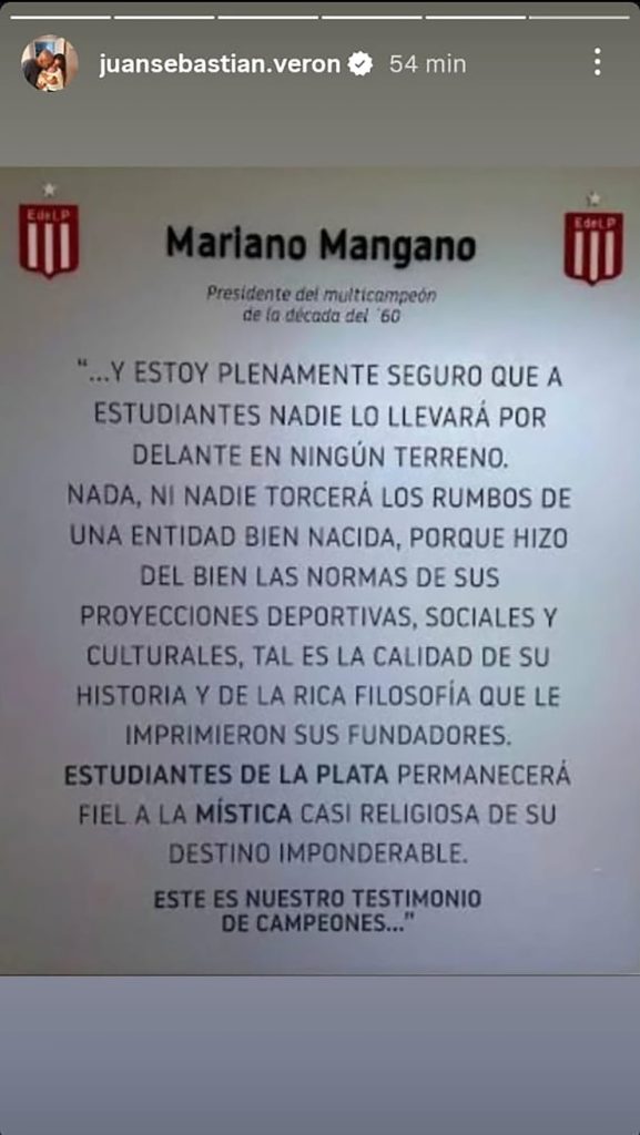 Tras la clasificación, Verón publicó un mensaje en redes donde citó a Mariano Mangano y destacó la identidad histórica de Estudiantes. Ningún jugador del plantel ni el entrenador Eduardo Domínguez habló tras el partido, lo que reforzó el clima de tensión en torno al episodio del pasillo.