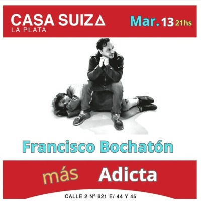 - Francisco Bochatón + Adicta – 21:00 en Casa Suiza, 2 entre 44 y 45.