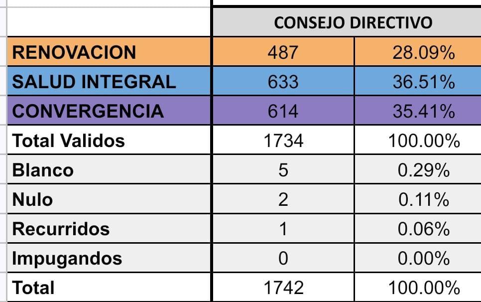 Se impuso la Lista 1 – Renovación Ciencias Médicas, vinculada a La Cámpora, Patria Grande y el PCR, que ganó por un margen mínimo: 50 votos contra 46 de Convergencia Universitaria, el sector ligado al radicalismo y al Colegio de Médicos.