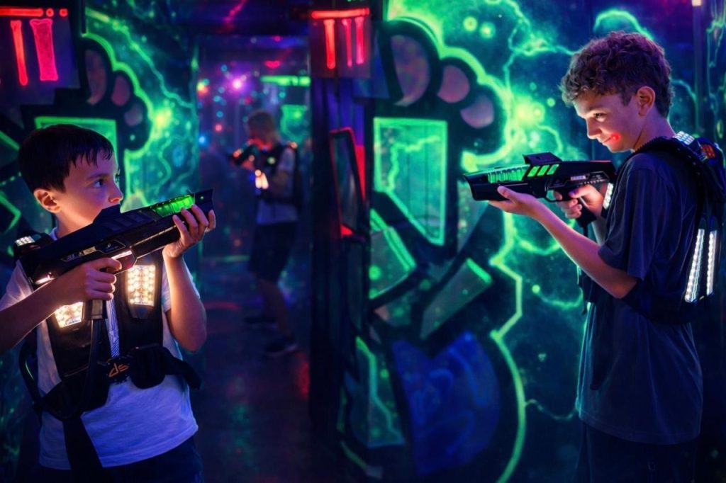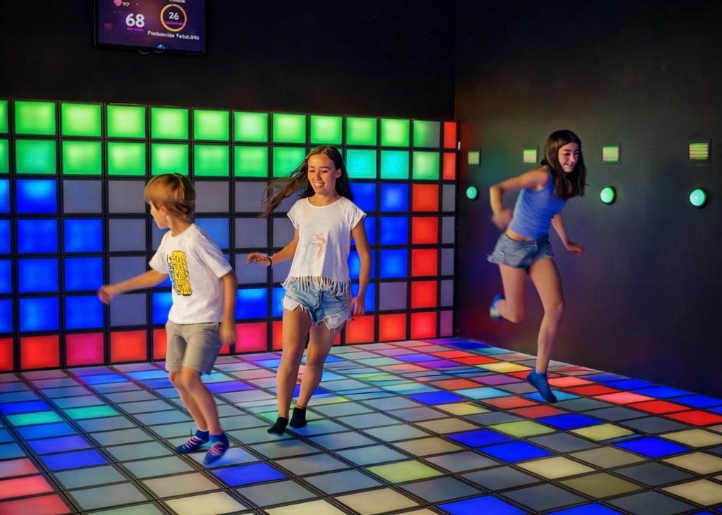 Las atracciones combinan luces, desafíos físicos y dinámicas grupales.