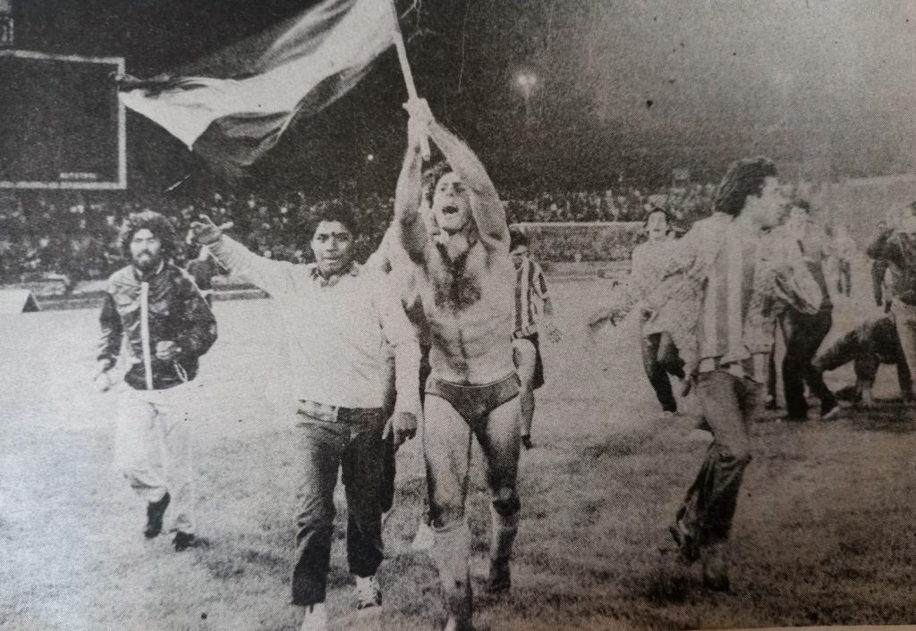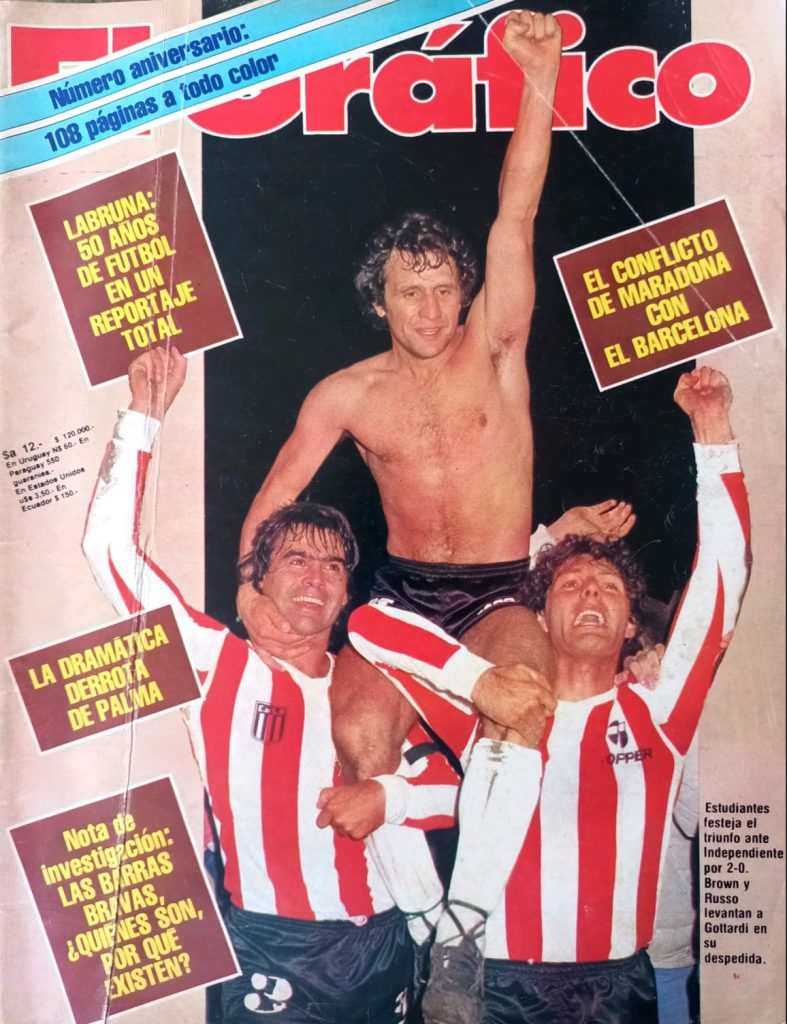 En febrero del 83 dio la vuelta olímpica en el Estadio Córdoba, casi desnudo, en calzoncillos y botines. Digna de una tapa de libro. Cuatro meses después cocinaron a Independiente. En la ida, aquel 2-0, fue tapa de El Gráfico en que Hugo Gottardi se despide y lo levanta con El Tata. Como decía un subtítulo, “correr mucho, pensar bien”. Russo fue el que más jugó en el Nacional, 18 partidos.