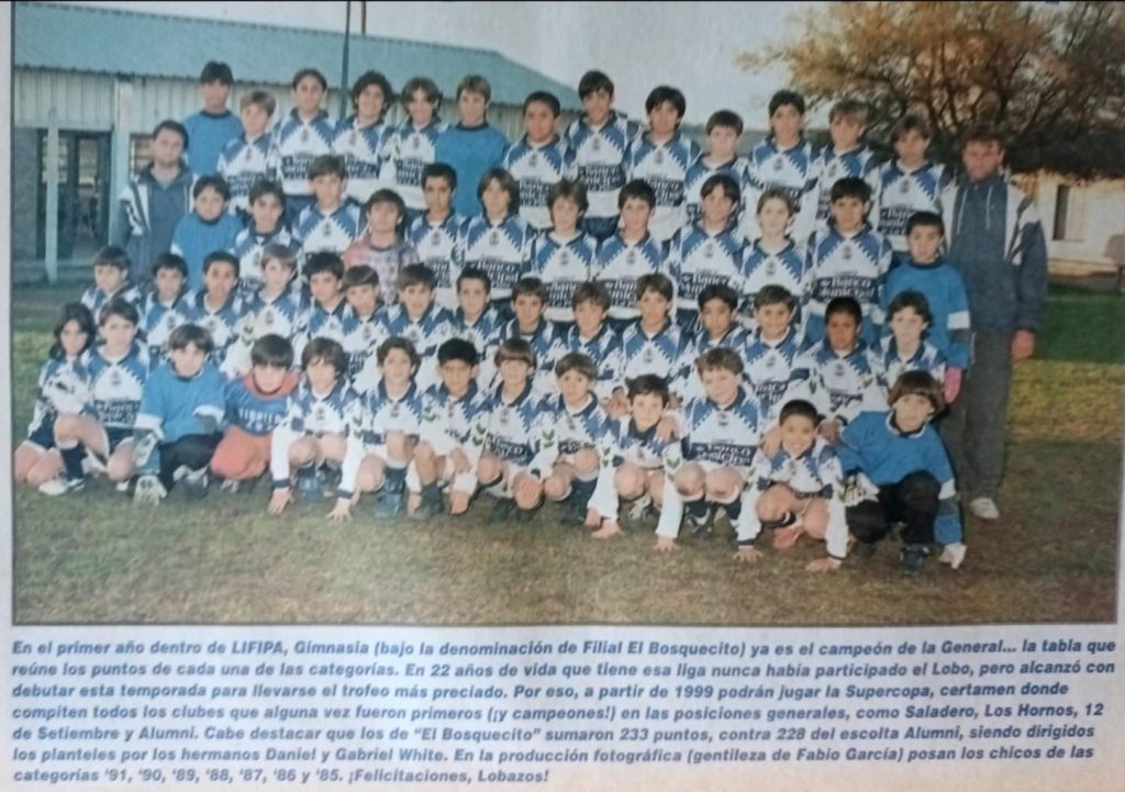La actividad llegó a centralizarse en El Bosquecit. Pasó a funcionar también la escuela “Pancho” Varallo. Y un año histórico fue la primera vez de Gimnasia en una liga como LIFIPA, donde pudo entrar con el nombre de Filial El Bosquecito. ganaron la tabla general con las categorías 85, 86, 87, 88, 89, 90 y 91. Pelota, pedagogía y victorias.
