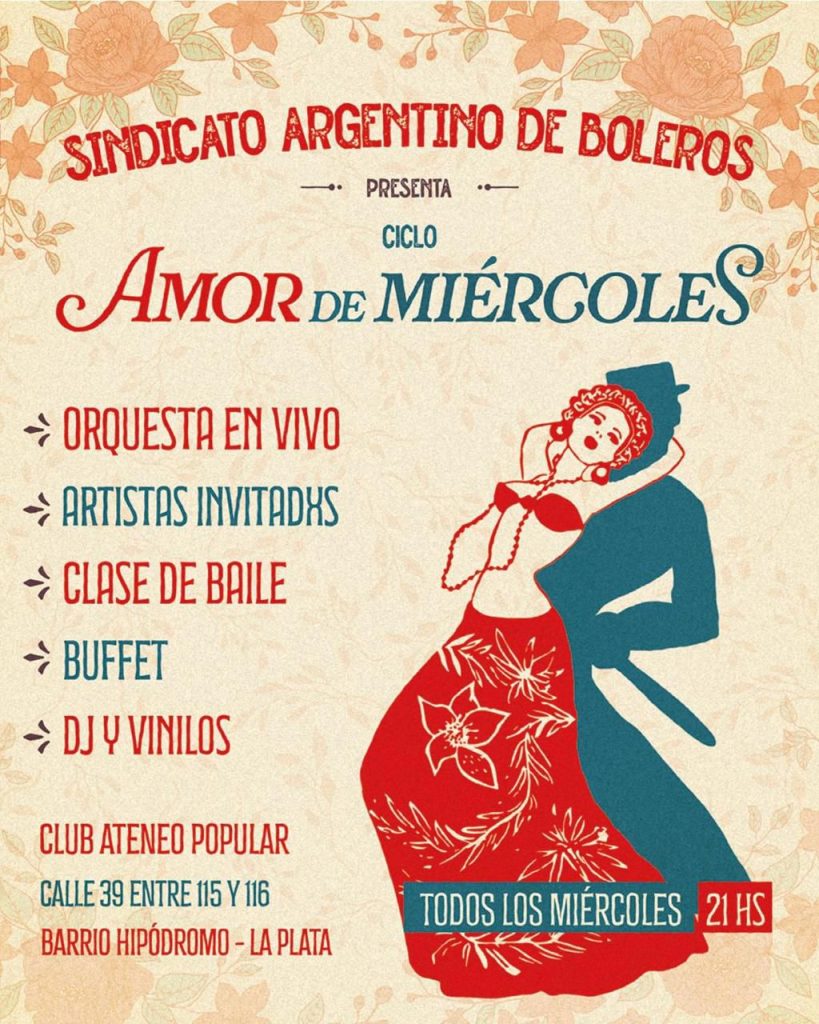 El próximo miércoles 15 de octubre, el Sindicato Argentino de Boleros vuelve a encender la noche platense con una nueva edición de su ciclo “Amor de Miércoles”, una experiencia cultural que celebra el romanticismo, la danza y la música en vivo. La cita será en el Club Ateneo Popular (Calle 39 entre 115 y 116, Barrio Hipódromo, La Plata), a partir de las 21 horas.