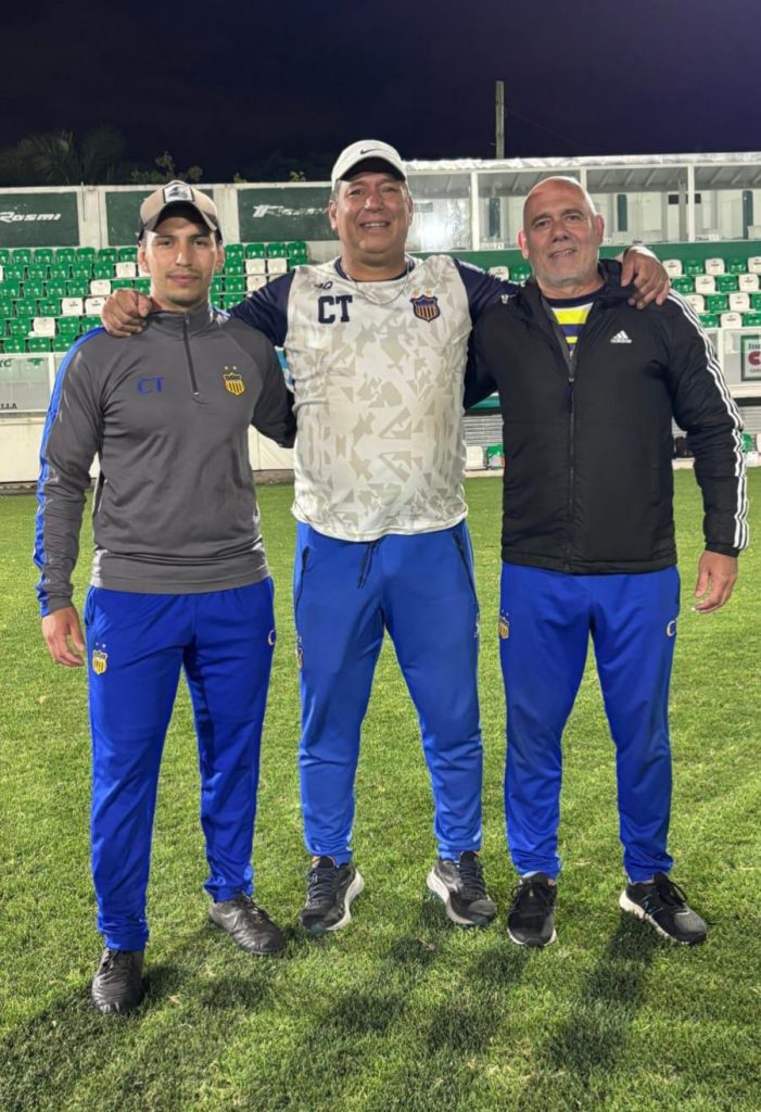 Fabricio Gaguero (PF), Luis Palhao (DT) y el «Gurí» Millan (ayudante técnico)