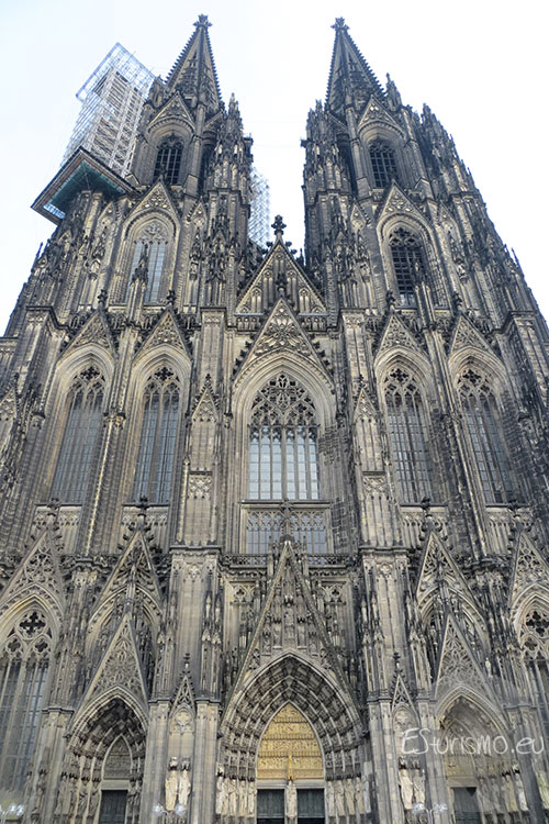 De aquel lado del mundo también se dilató la terminación de su estructura, nada menos que 632 años. Pasaron por daños sufridos por la invasión normanda en el año 881 y debió ser restaurada después. Luego, un incendio que destruyó gran parte de la ciudad en 1149 alcanzó también a la Catedral. Como albergó los huesos de los Tres Reyes Magos (se conservan en el relicario ubicado el interior de la catedral, transportados desde el Duomo de Milán en 1164) se hizo necesaria agrandarla por la afluencia de fieles, poniendose una nueva piedra fundamental en 1248.