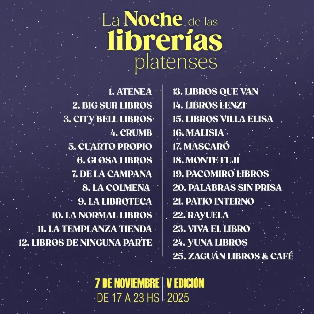 Con propuestas para todos los gustos, La Noche de las Librerías promete ser una verdadera fiesta cultural en las calles platenses, donde los libros volverán a ser protagonistas de una noche mágica.