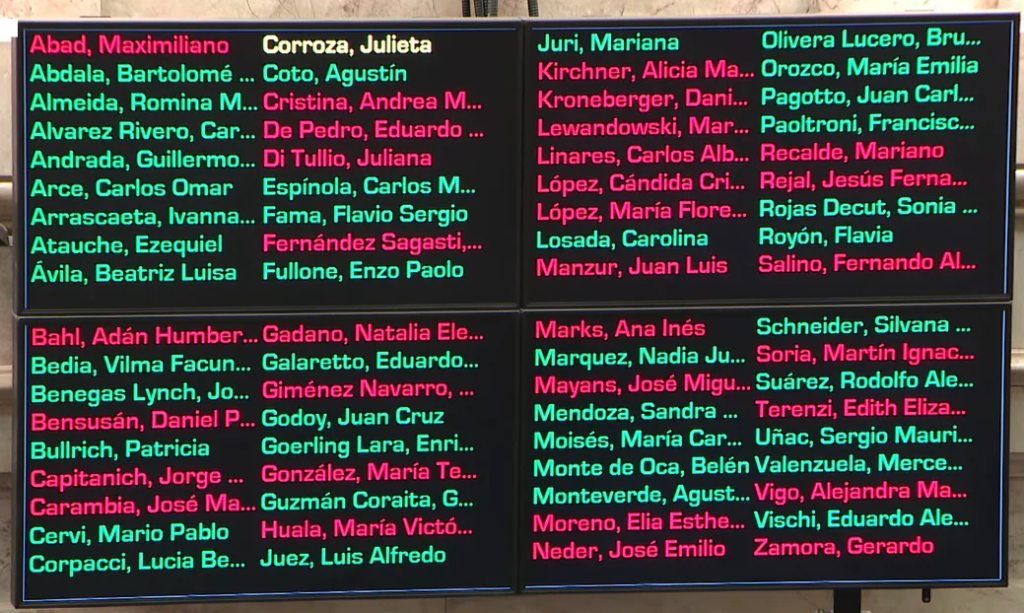 Bartolomé Abdala (LLA), Romina Almeida (LLA), Carmen Alvarez Rivero (LLA), Guillermo Andrada (CF), Carlos Arce (FR), Ivanna Arrascaeta (LLA), Ezequiel Atauche (LLA), Beatriz Avila (LLA), Vilma Bedia (LLA), Joaquín Benegas Lynch (LLA), Patricia Bullrich (LLA), Mario Cervi (LLA), Lucía Corpacci (JUS), Agustín Coto (LLA), Carlos Espínola (PU), Flavio Fama (UCR), Enzo Fullone (LLA), Eduardo Galaretto (UCR), Juan Cruz Godoy (LLA), Enrique Goerling Lara (PRO), Gonzalo Guzmán Coraita (LLA), Luis Juez (FCC), Mariana Juri (UCR), Carolina Losada (UCR), Nadia Márquez (LLA), Sandra Mendoza (CF), Carolina Moisés (CF), María Belén Monte De Oca (LLA), Agustín Monteverde (LLA), Antonio Olivera Lucero (LLA), María Emilia Orozco (LLA), Juan Carlos Pagotto (LLA), Francisco Manuel Paoltroni (LLA), Sonia Elizabeth Rojas Decut (FR), Flavia Royón (SALT), Silvana Schneider (UCR), Rodolfo Suárez (UCR), Sergio Uñac (JUS), Mercedes Valenzuela (UCR) y Eduardo Vischi (UCR).