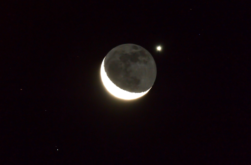 Esa misma tarde del equinoccio, al atardecer, se podrá ver una conjunción preciosa: El «beso» de la Luna y Venus, comúnmente conocido como conjunción celestial, es un evento astronómico donde ambos astros parecen acercarse mucho en el cielo al atardecer. Este fenómeno, visible a simple vista, ocurre por la alineación orbital en la eclíptica. Se puede apreciar a simple vista y no requiere de total oscuridad para verse.