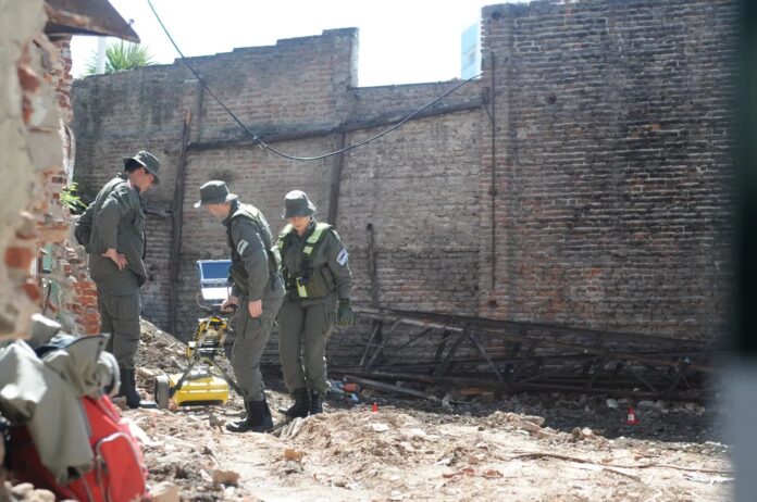 Las tareas comenzaron con la limpieza profunda del predio para facilitar el trabajo técnico. Luego, los peritos avanzaron con el uso de un georradar para detectar anomalías en el suelo.