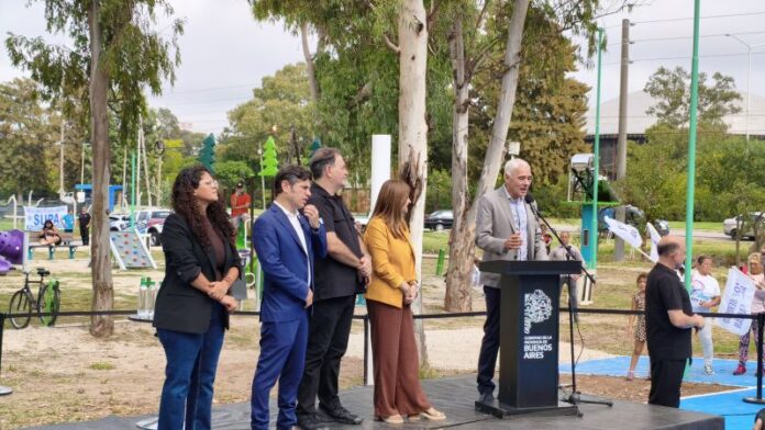 El gobernador bonaerense Axel Kicillof y el intendente de Berisso Fabián Cagliardi encabezaron este martes la inauguración de un nuevo playón deportivo en el Parque Abuelas de Plaza de Mayo, en el barrio Villa Nueva.
