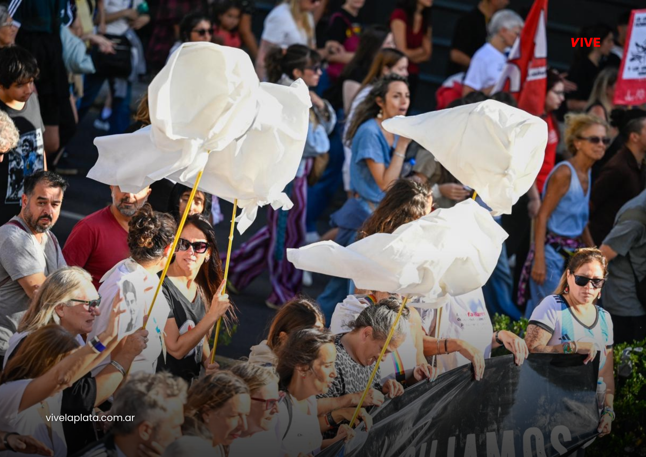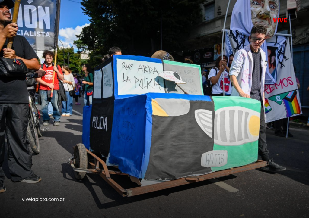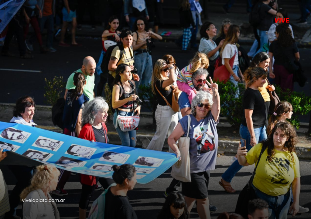 Desde Plaza San Martín, los manifestantes iniciaron la tradicional marcha por el centro platense. El recorrido estuvo marcado por consignas, carteles, pañuelos y expresiones artísticas que reafirmaron el reclamo de memoria, verdad y justicia.