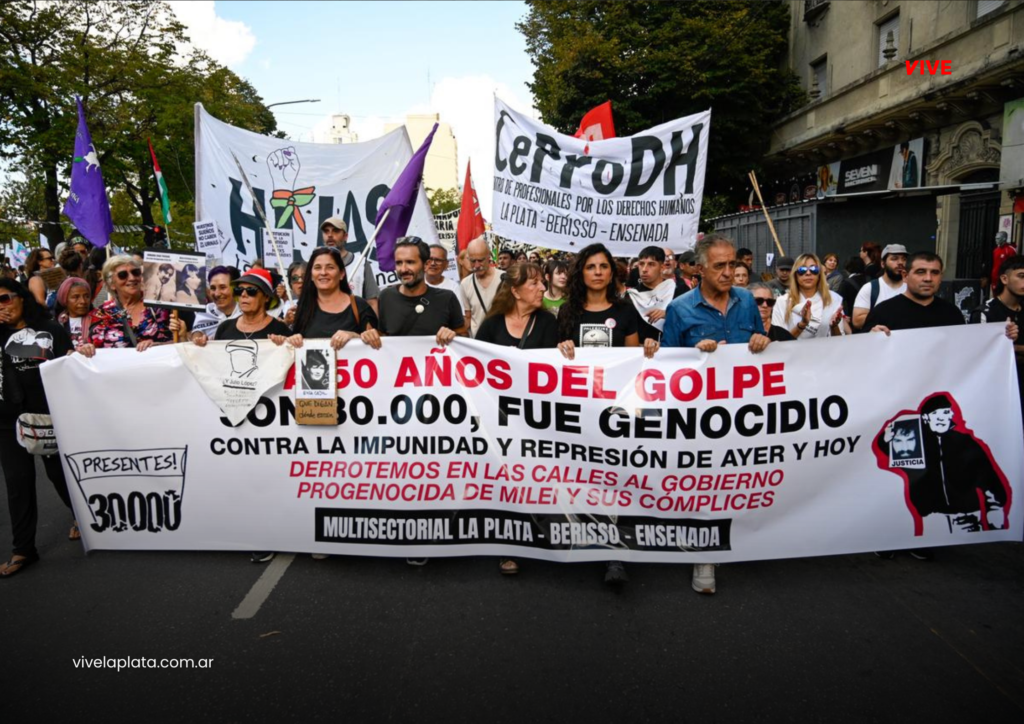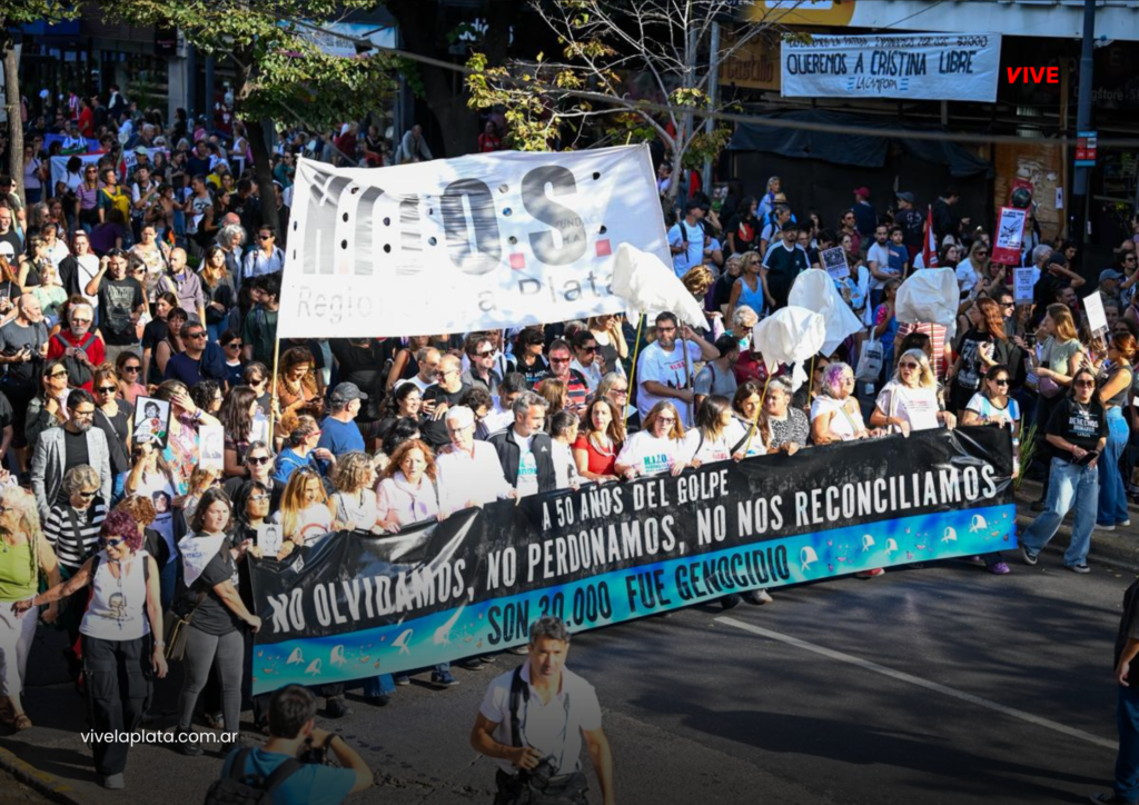 En la previa del Día de la Memoria por la Verdad y la Justicia, La Plata fue escenario de una multitudinaria movilización para recordar el 50° aniversario del último golpe cívico-militar. La convocatoria reunió a organizaciones sociales, políticas, sindicatos, espacios culturales y vecinos que se acercaron a participar de una jornada de memoria y reflexión.
