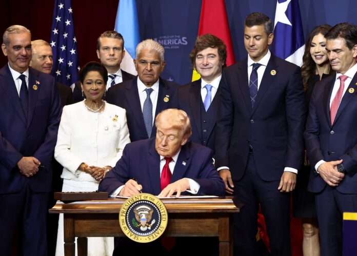 En un intento por recuperar su hegemonía mundial y su estabilidad interna – la cual se encuentra con severas dificultades tras las masacres realizadas en los operativos del ICE y por su alianza con el ente israelí durante el genocidio palestino y el ataque a Irán -, el presidente Donald Trump convocó a 12 mandatarios de los 34 países americanos en su resort de lujo ubicado en Miami.