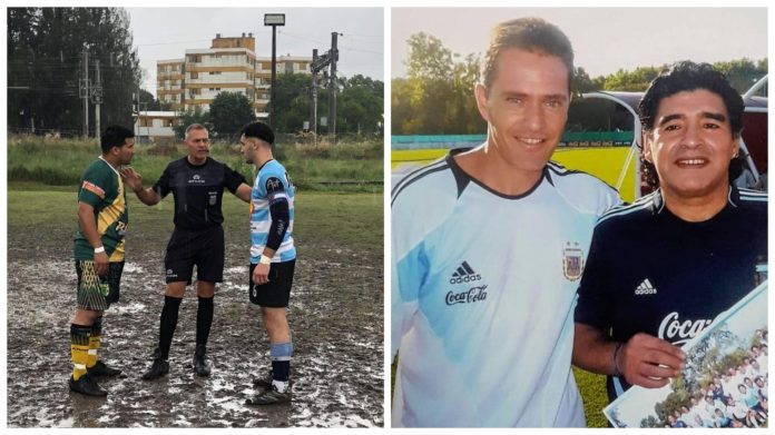 Así como Martín está cerca de Messi, Abalo y su oficio lo llevaron una vez a cercanías de Maradona, en el predio de Ezeiza. Fue durante un partido informal (jugado con el cuchillo entre los dientes) donde el cuerpo técnico de Diego Armando (con Mancuso) bailaron a un combinado arbitral, previo a la Copa Mundial de Sudáfrica. “Atajé en el segundo tiempo”, suelta Bocha, que reemplazó a Brasenas y con los guantes quiso evitar lo imposible… un penal a cargo de Diego. El platense osó acercarse al ídolo de la gente con esta frase: “Si la atajo, no vengo más, Diego”. El 10 río y ajustició a un palo, lanzando el puño al aire… “Nunca la vi… Perdimos 4 a 1”.