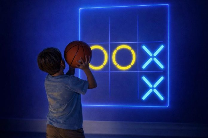 Las atracciones combinan luces, desafíos físicos y dinámicas grupales.Parque de trampolines con juegos LED en Gonnet