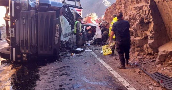 El accidente fatal se produjo antes del ingreso a un túnel. El camionero falleció en el acto. Trasladaron a dos adultos y a tres menores que viajaban en el automóvil