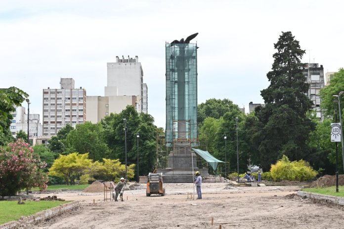 La histórica estructura, símbolo de la hermandad argentino-italiana, será movida desde su ubicación actual, cerca de diagonal 77, hacia el centro de la plaza. Este cambio eliminará el estacionamiento vehicular en el área para convertirla en una zona exclusivamente peatonal. Las tareas están a cargo de Rol Ingeniería S.A., con una inversión de $1.992.944.866, y cuentan con estrictas medidas de seguridad para preservar la integridad de la escultura.